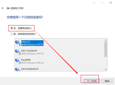 5、选择”否,创建新连接(没有这个界面的,可以忽略,直接下一步)